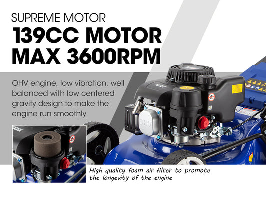 POWERBLADE Lawn Mower 139CC 17 - Petrol Powered Push Lawnmower 4 Stroke Engine